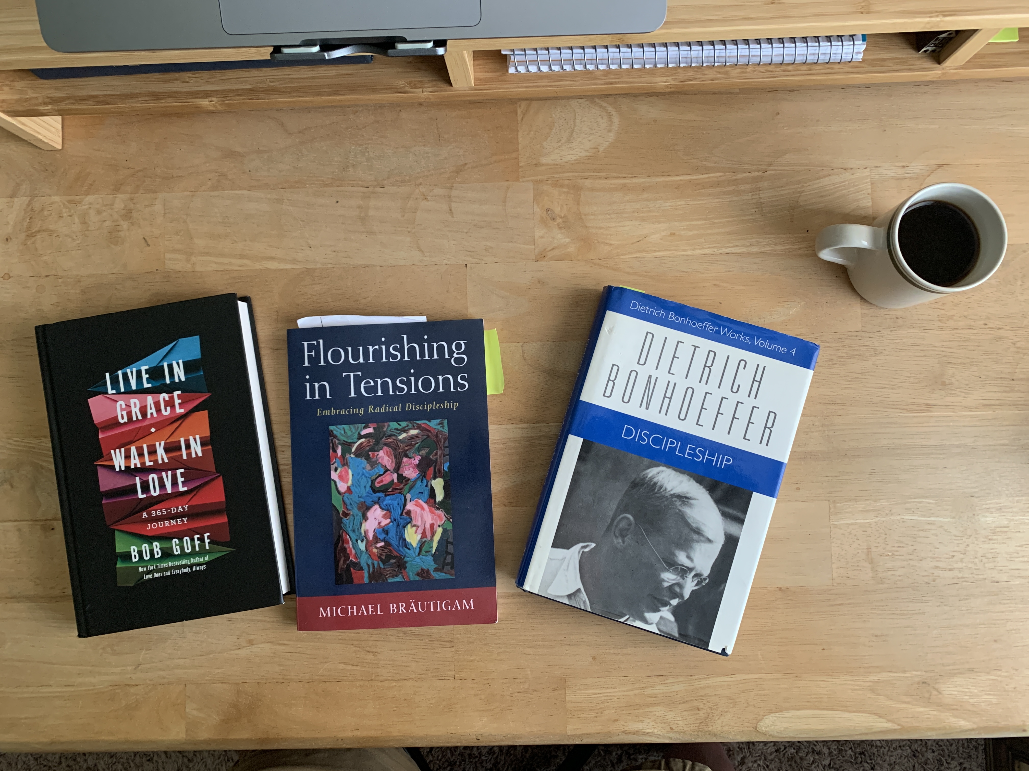 Books: I think that my posts are starting to get more and more wordy. It might be time for just a couple of pics. The book to the left is a book I found at Goodwill. I ABSOLUTELY love Bob Goff and read/listen to anything he writes. He helps me loosen up, look for joy, and above all, remember that if I am not loving and valuing people, I am not taking Jesus seriously. The book in the middle has been a wonderful and insightful read. The School of Divinity at the University of Edinburgh has asked me to write a 500-word review for this book. And the one to the right is my personal read for the next 3-4 months. I started listening to Bonhoeffer’s Cost of Discipleship a few weeks ago and decided that I need a print copy in my hands to read slowly, mark, etc. This is supposedly a better and more official translation. I was able to get a hardback in really good condition for only $10. I am going to read it slowly, prayerfully, and with the intent to love Jesus more and surrender more fully to him.