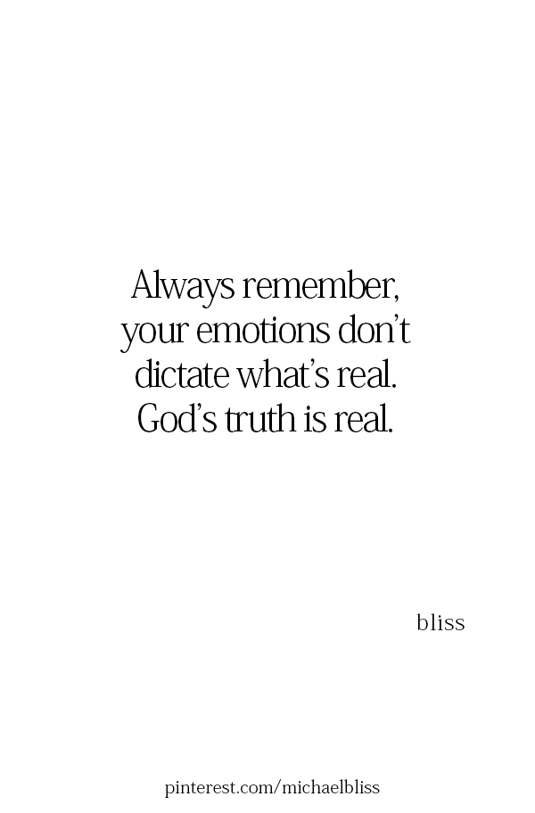 Truth and Emotion: Emotions are NOT a reliable guide when deciding what is true and what is good. While emotions are a gift from God, they ought never to be exalted to a place where we are relying on them to decide what is true and good. One should not minimize or exalt emotions. Have you heard of the phrase, “Stay in your lane.” I think that this applies to the emotional life. Emotions must be told to “stay in their lane,” being neither minimized nor exalted. The moment we start determining what is true or not true based on what we feel, we are in trouble. It is a slippery slope that is bound to lead to a VERY unstable life.