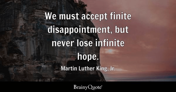 Disappointment: I have said it and will continue to say it again: How you deal with disappointment will turn out to be one of the most important factors in determining your quality of life, the direction that your life takes, and the type of person you are. It is just part of life.